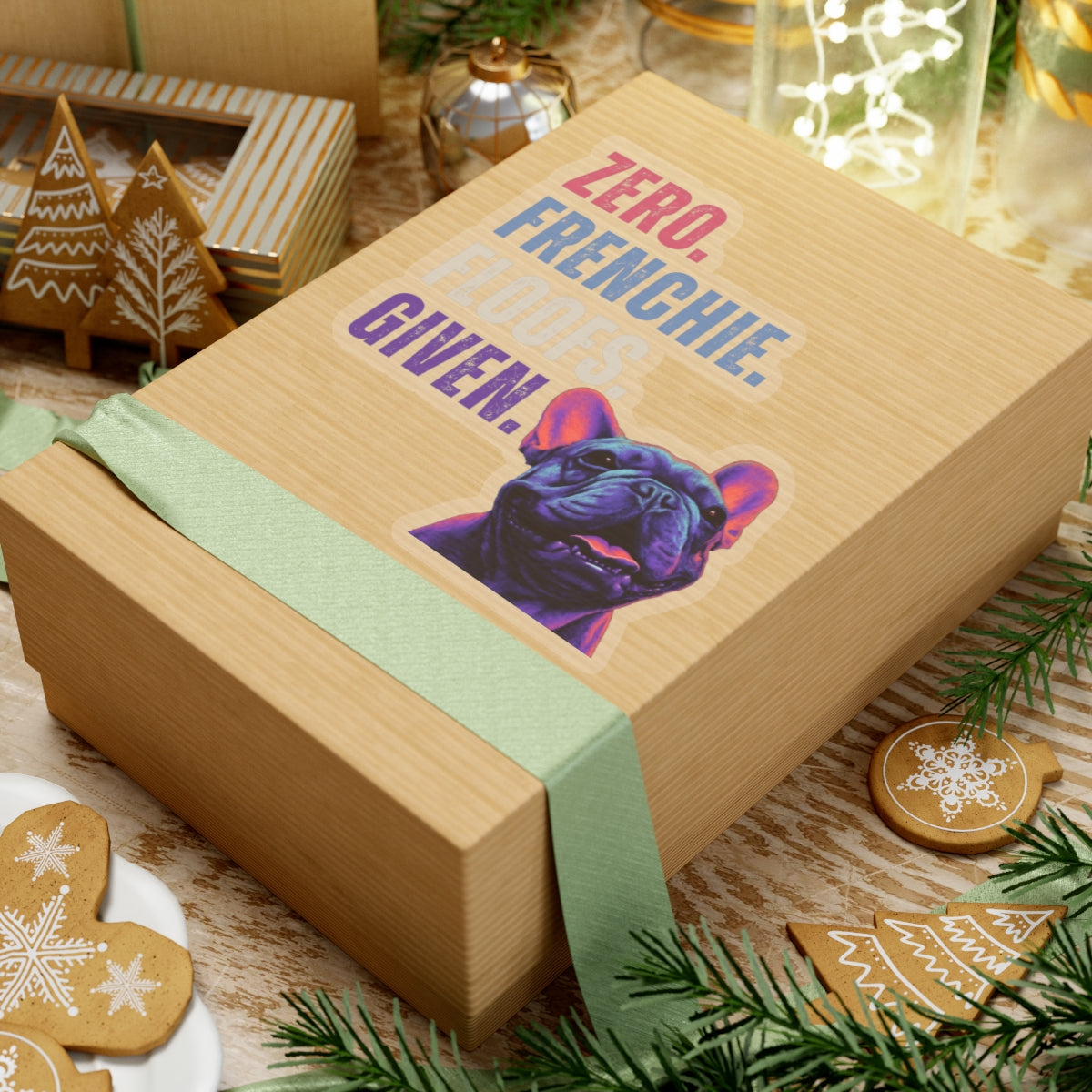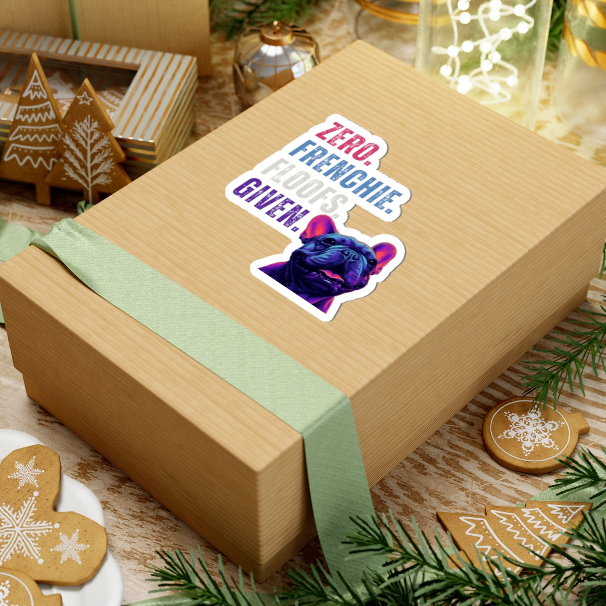 This Zero Frenchie Floofs Given vinyl sticker captures the playful, quirky charm of French Bulldogs — complete with colorful pop-art style and a cheeky message that delivers instant personality wherever you stick it. Perfect for laptops, water bottles, journals, phone cases, or anywhere you want a little dog-lover joy.