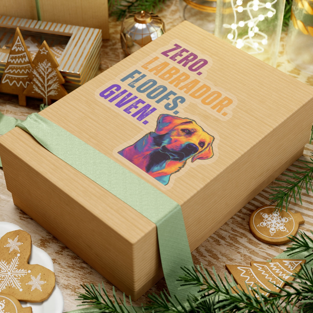 🎨 Bright Lab Artwork: Featuring a stylized Labrador Retriever with the bold “ZERO. LAB. FLOOFS. GIVEN.” message.